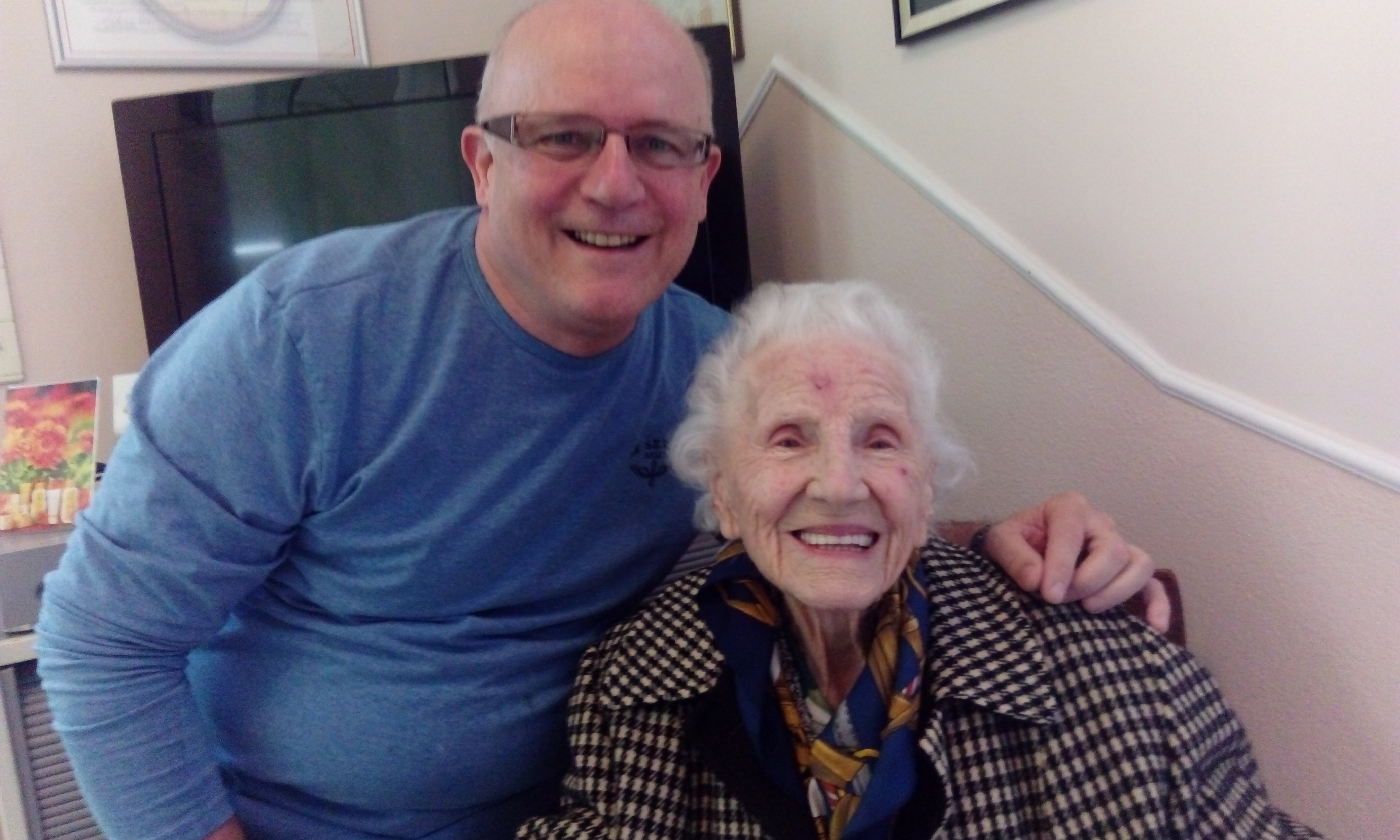 A 102 éves Dégay néni boldog mosolya mindent elárul közérzetéről és fogai állapotáról.