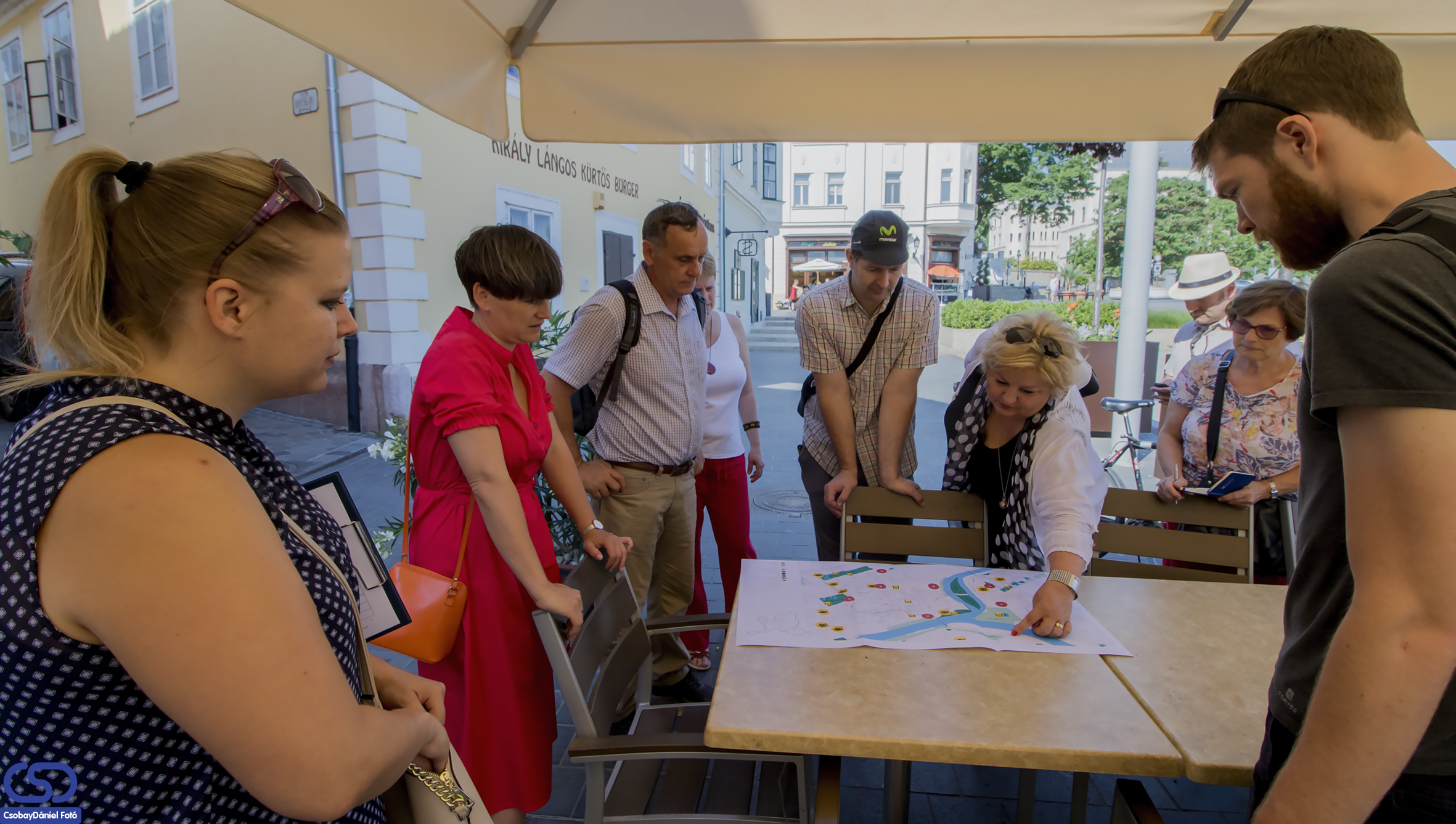 Kedden tartott terepbejárást a belvárosban, a PREHEALTH – PROMOTING EDUCATION AND JOBS TO ENHANCE THE USE OF URBAN BLUE AND GREEN INFRASTRUCTURE FOR HEALTH AND FITNESS” projekt akciócsoportja, Győrben.