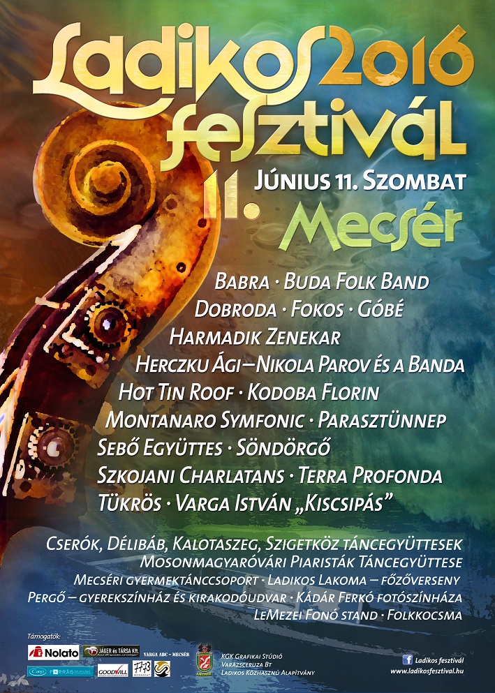 Herczku Ági - Nikola Parov és a Banda, a Sebő együttes, a Buda Folk Band, a Söndörgö Együttes, a Tükrös Együttes, valamint az Edinburgh-ból, Skóciából érkező hagyományos blues zenét játszó Hot Tin Roof trió lesznek az idei Ladikos Fesztivál húzónevei, de mellettük természetesen számos ismert és méltán elismert zenekar és fellépő szórakoztatja 2016. június 11-én, szombaton, Mecséren a hagyományos Ladikos Fesztiválon a közönséget.