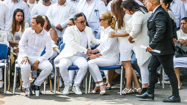 Junior, ahogy a képen is látszik, végig támogatta Csillát, akinek szüksége is volt erre, mert a szertartás alatt többször is ájulás közeli állapotba került.