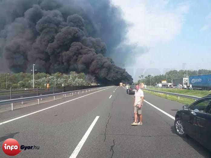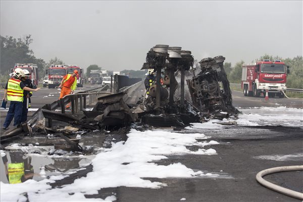 Torlódás alakult ki a mindkét irányban teljes szélességében lezárt M7-es autópályán, a táskai pihenőhelynél szerda délelőtt felborult és kigyulladt üzemanyagot szállító kamion miatt. A balesetben a jármű sofőrje meghalt.