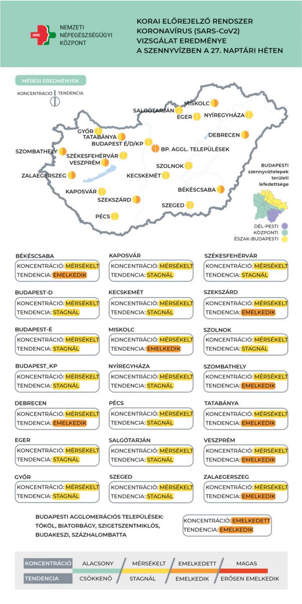 Továbbra is stagnál a szennyvízben mért víruskoncentráció Győrben – ez derült ki a Nemzeti Népegészségügyi Központ legfrissebb adataiból.
