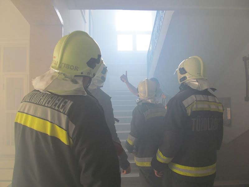 A főfelügyelő egyik tanítási óra alatt a földszinten és az első emeleten füstgéppel füstöt állított elő, majd felhangzott a veszélyt jelző szaggatott csengőszó az épületben. A diákok a „Tűzriadó Tervben” meghatározott útvonalakat igénybe véve a tanárok irányításával szervezetten, fegyelmezetten hagyták el a termüket, s néhány perc alatt kivonultak az épület elé a kijelölt gyülekezőhelyre.