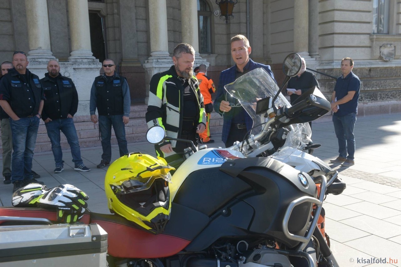 Azzal az 1200 köbcentis, csúcskategóriájú BMW motorral érkezett a Városház térre Mátis Csaba, ami csütörtöktől a munkájukat segíti.