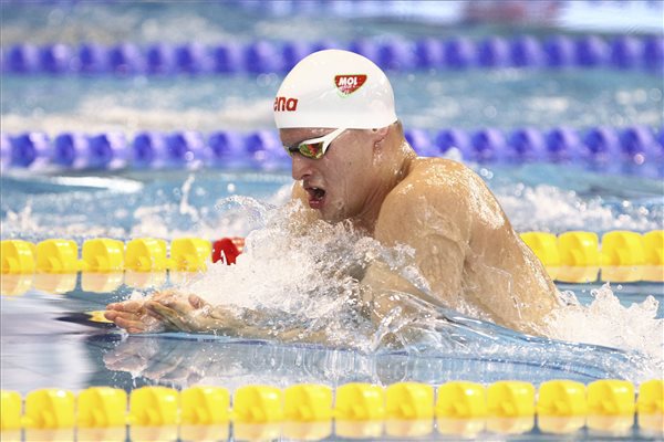 Gyurta Dániel a 100 méteres mellúszás előfutamában.