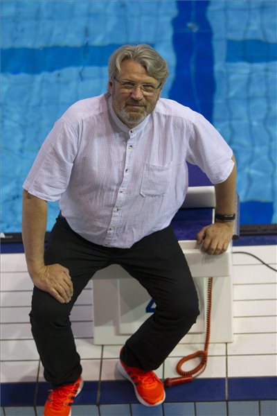 Hargitay András olimpiai bronzérmes, világ- és Európa-bajnok úszó, a magyar úszóválogatott új szövetségi kapitánya a győri Aqua Sportközpontban: