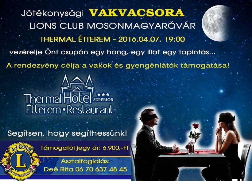 Jótékonysági Vakvacsorára invitálja az érdeklődőket a Mosonmagyaróvári Lions Club.