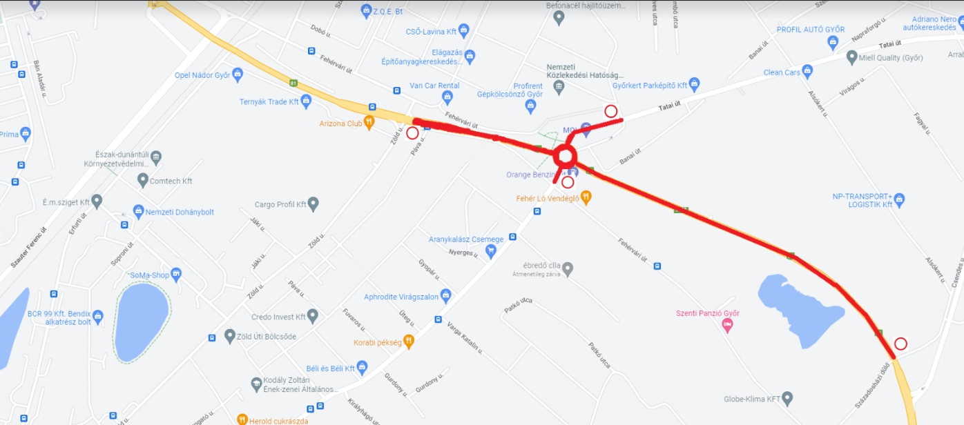 - A 81-es sz. elsőrendű főutat használók Győrből kifelé a Zöld utca – Jereváni út – József Attila út – régi Fehérvári út útvonalon tudnak közlekedni, Győrbe érkező forgalom a régi Fehérvári út – József Attila út – Jereváni út – Zöld utca útvonalat használhatják.