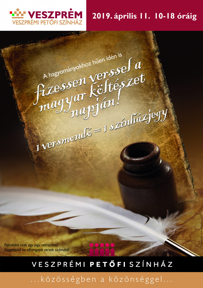 Idén már ötödik alkalommal lesz lehetőség arra a költészet napja alkalmából, hogy nézőink verssel fizessenek a színházjegyért. - írja oldalán a Veszprémi Petőfi Színház