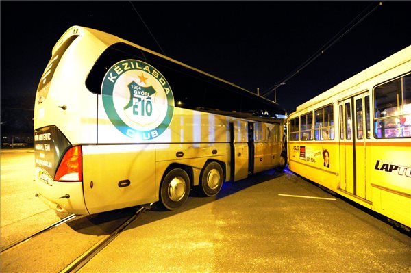 Villamossal ütközött a Győri ETO busza