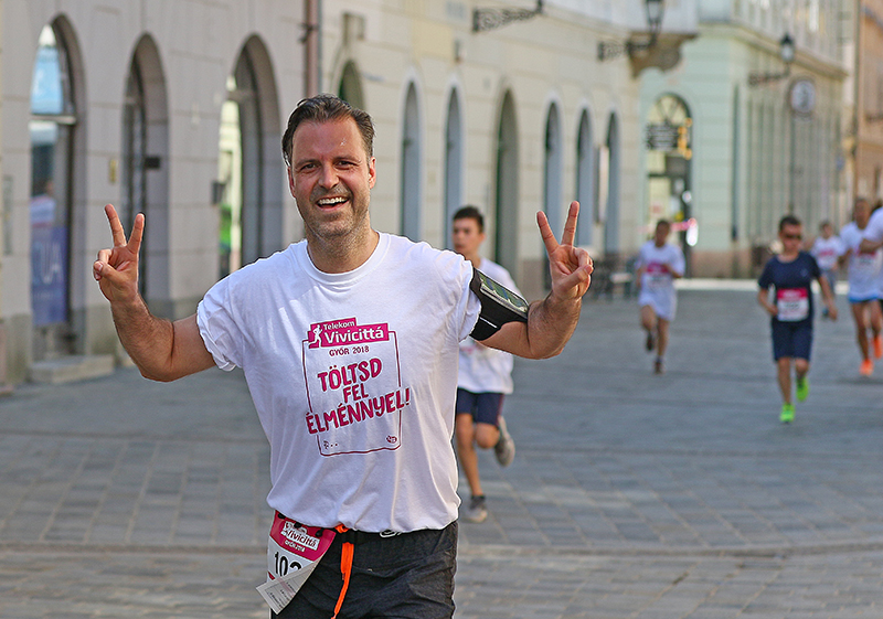 A futam előtt Sebestyén Orsolya aerobikedző várta közös bemelegítésre a részvevőket, több százan mozogtak vele együtt, hogy aztán nyáreleji melegben 802-en vágjanak neki a győri belváros utcáin át vezető 2,6 km-es távnak.