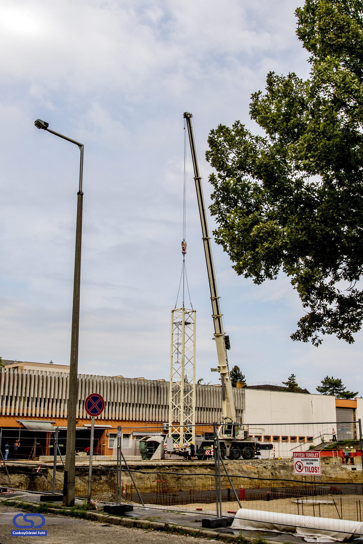 Folyamatosan zajlanak az építkezési munkálatok a Vásárcsarnok mellett. Kedden már ideiglenes helyén, az óriássátorban kezdenek az árusok, ahova várják vásárlóikat.